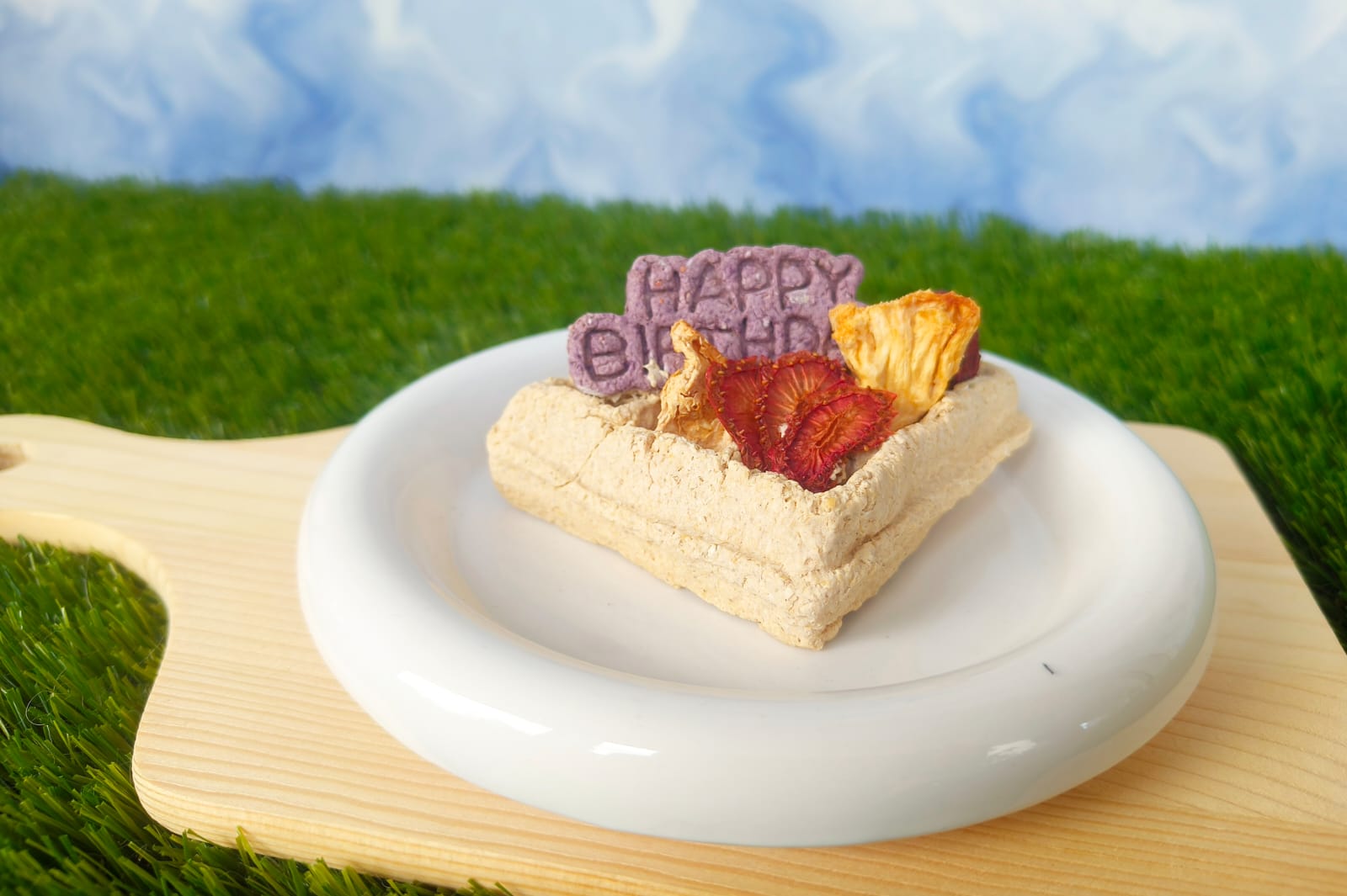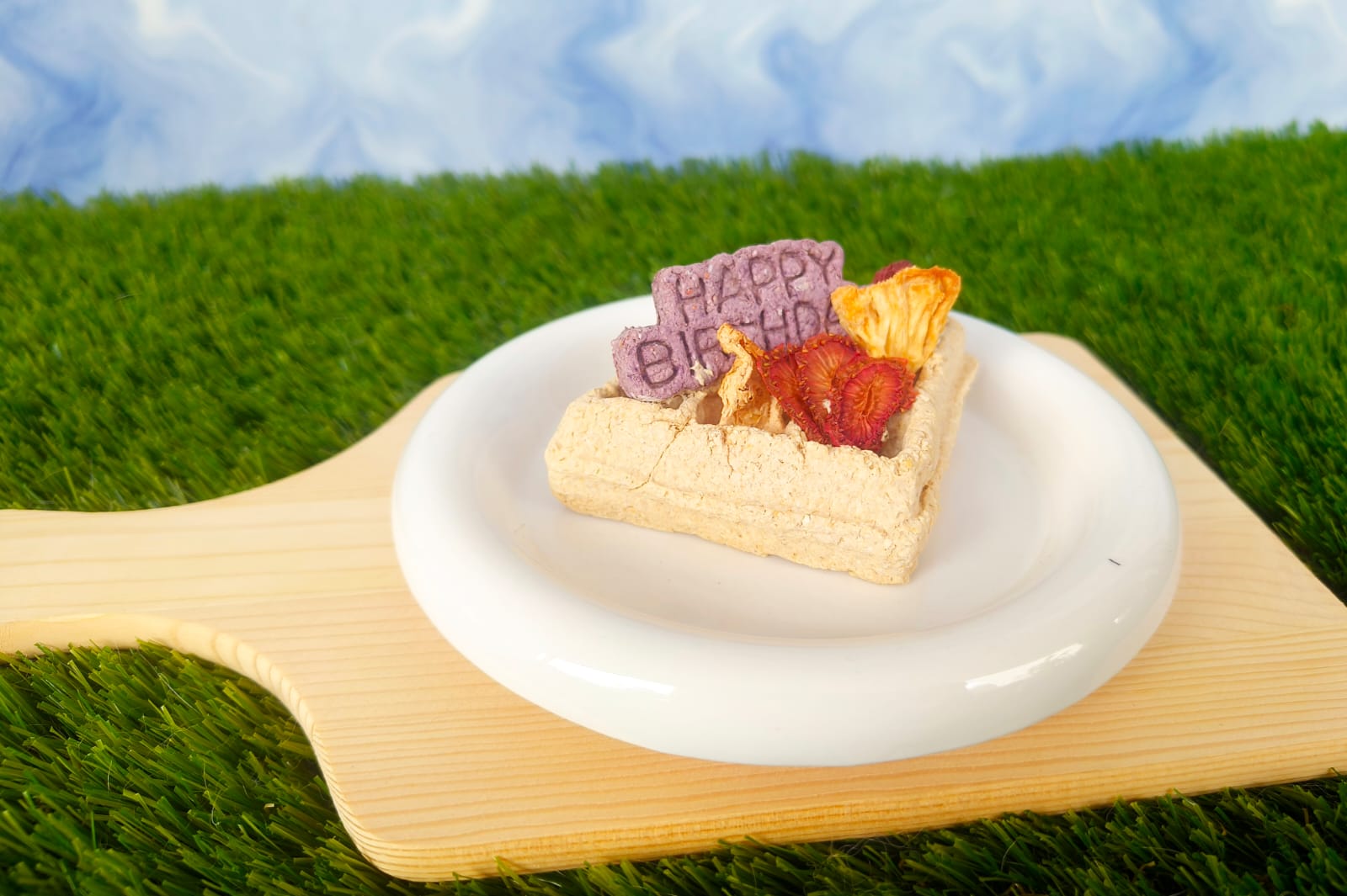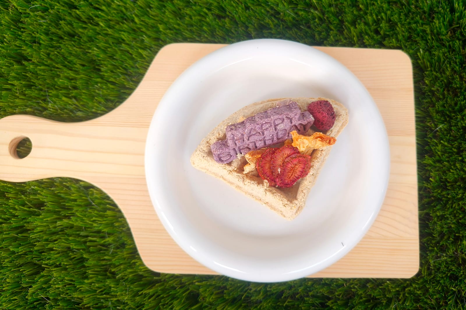 Organic oats, bunny safe fruits and veggies & baked bananas, strawberry and pineapple
